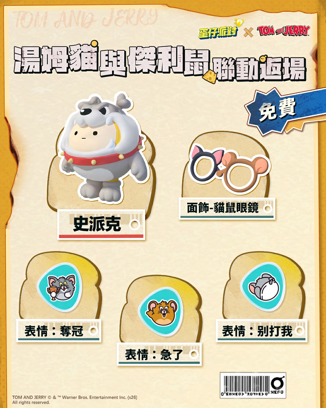 免費獎勵當然不能少!超萌「斯派克」、面飾「貓鼠眼鏡」以及招牌表情同步返場!